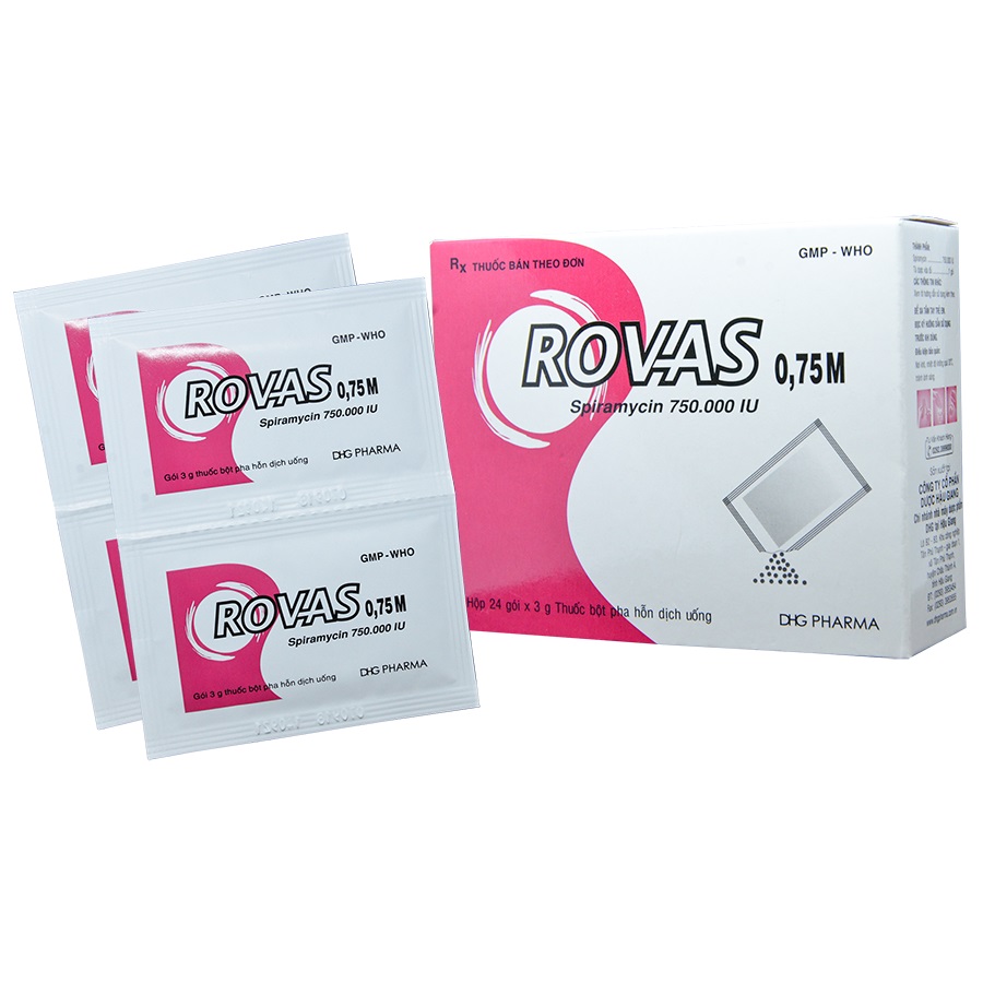 DƯỢC LỰC HỌC: Rovas với thành phần hoạt chất chính là spiramycin, kháng sinh nhóm macrolid. Ở các nồng độ trong huyết thanh, thuốc có tác dụng kìm khuẩn nhưng khi đạt nồng độ ở mô thuốc có thể diệt khuẩn. Cơ chế tác động của spiramycin là tác dụng lên các tiểu đơn vị 50S của ribosom vi khuẩn và ngăn cản vi khuẩn tổng hợp protein.